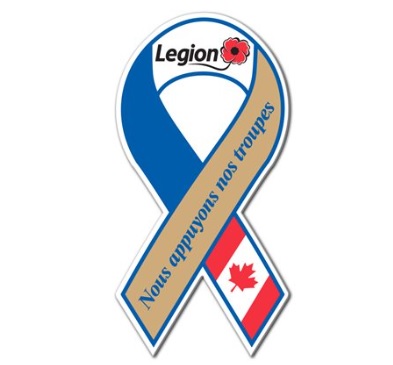 Cet aimant fait sur commande pour la Légion royale canadienne peut être utilisé à l’intérieur comme à l’extérieur. L’aimant « Nous appuyons nos troupes » mesure 8 1/2″ de haut.
