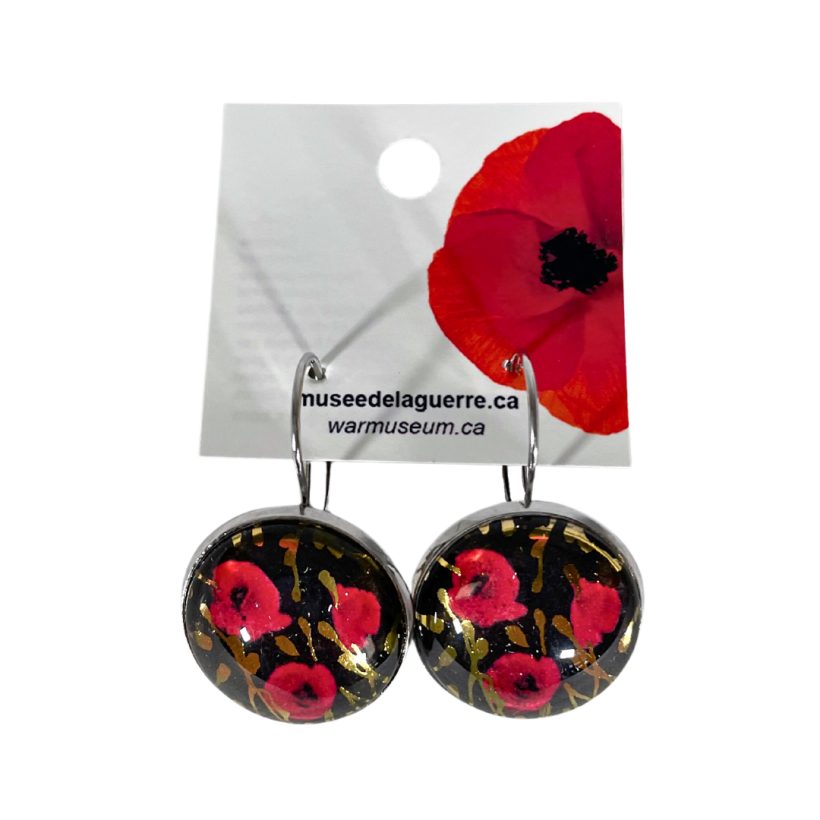 Fabriquées à la main au Québec, ces boucles d’oreilles rondes style créole arborent un magnifique motif de coquelicots, symbole intemporel du souvenir. Leur finition en acier inoxydable poli est disponible en argent ou en or.