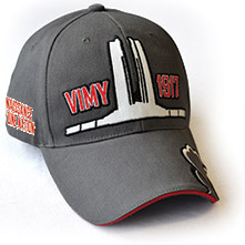 Ces casquettes intègrent quelques éléments graphiques à la fois modernes et classiques, des effets rendus possibles grâce à des impressions de haute qualité et à une broderie faite directement sur la casquette. Le devant de la casquette met en vedette une image du mémorial de Vimy et l’inscription « VIMY 1917 », tandis qu’une silhouette de coquelicot est brodée sur la visière. L’inscription « NAISSANCE D’UNE NATION » a été brodée sur le côté droit, tandis que notre logo et les couleurs des quatre divisions canadiennes qui se sont battues ensemble pour la première fois, viennent compléter les éléments graphiques.