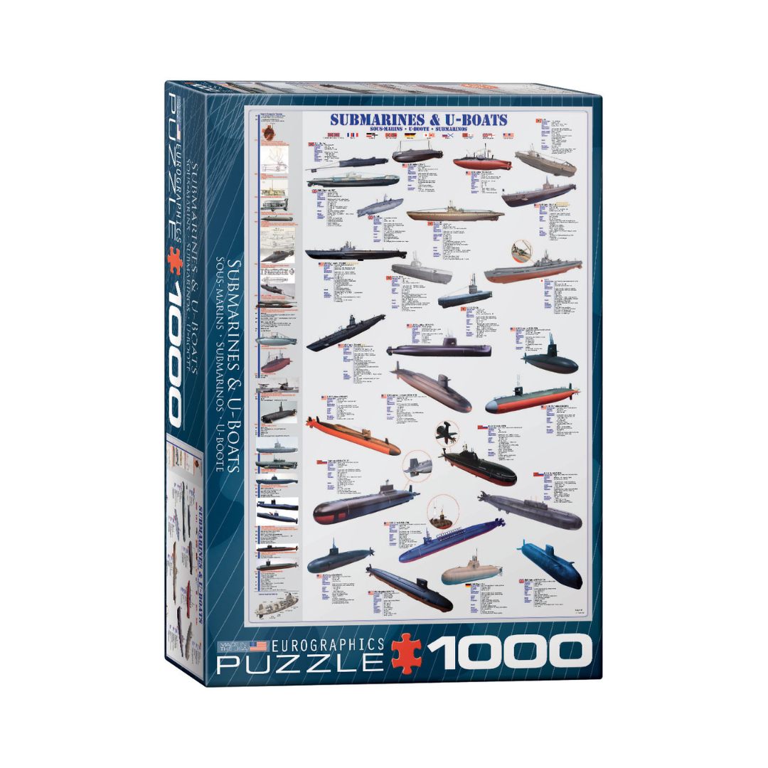 Découvrez les mystères captivants du monde sous-marin avec notre casse-tête Submarins et U-Boats de 1000 pièces ! Ce casse-tête méticuleusement conçu donne vie au monde impressionnant des sous-marins, avec des navires emblématiques tels que l’USS Virginia, l’USS Typhoon, l’U-99 et le K-141 Kursk, ainsi que plus de 20 autres sous-marins qui attendent d’être explorés.