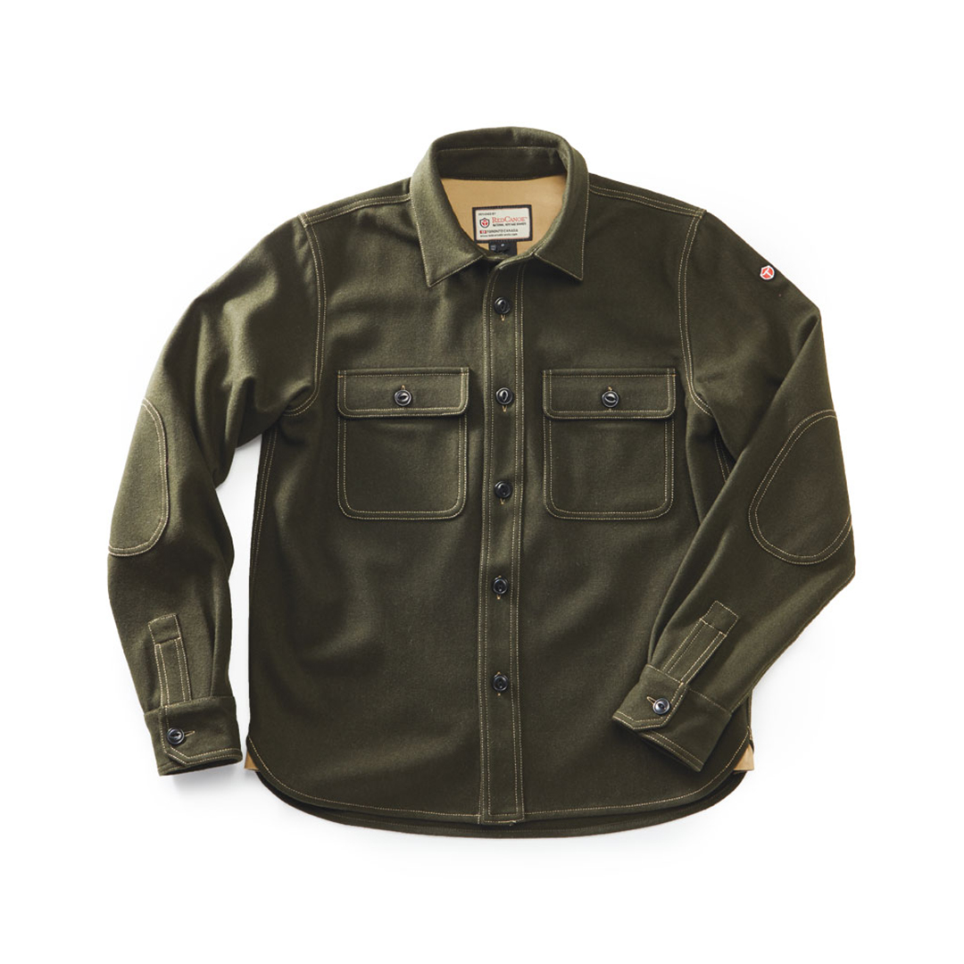 Confectionnée dans un mélange de laine résistant, cette chemise Woodsman vert kaki est conçue pour les activités de plein air. Elle est dotée de poches avant et de coudières.