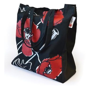 Ce sac à provisions noir sert non seulement à transporter vos achats, mais démontre de façon élégante votre appui à la Légion royale canadienne et au Souvenir. On retrouve, imprimé sur la toile noire, des beaux coquelicots rouges conçu à l’interne par notre artiste Karen Taylor. Le sac transmet clairement son message grâce au design simple et minimaliste. De fabrication durable 70 %coton/30 % polyester et lavable à la machine, le sac est de mesure standard à 13 ½ po de largeur, 15 po de hauteur et 6 po de profondeur (34x 38x 15 cm).