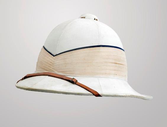 Ce casque de soleil, en liège, et son étui, en métal, ont appartenu à Horatio Nelson Lay, qui servit à bord du NCSM Skeena, au début des années 1930.